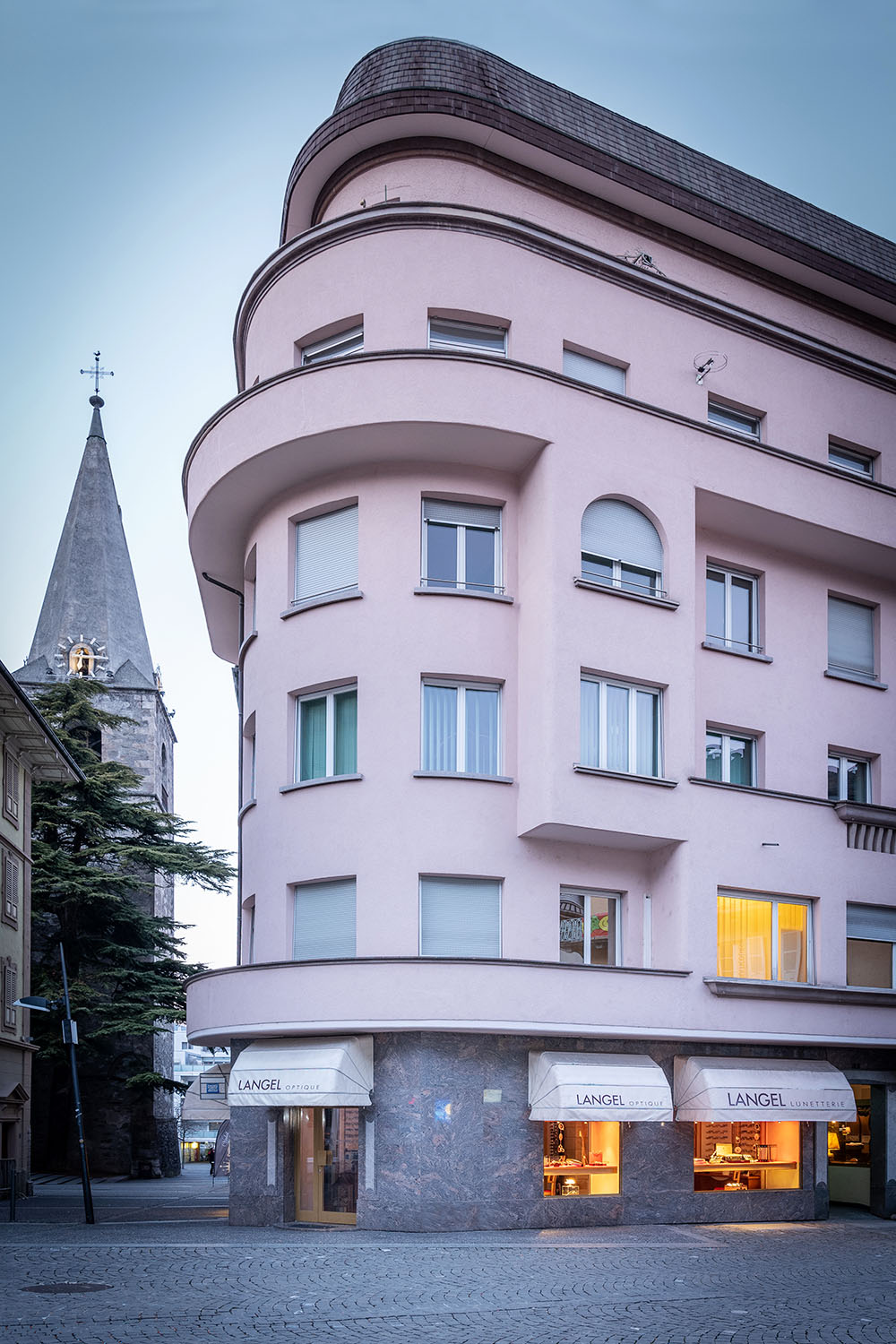 1982- Les locaux sont à nouveau trop exigus. Alain Langel quitte l'entreprise familiale et ouvre son commerce dédié entièrement à la lunette, place Tübingen 5 à Monthey.